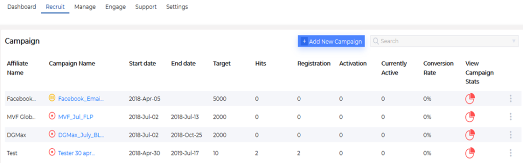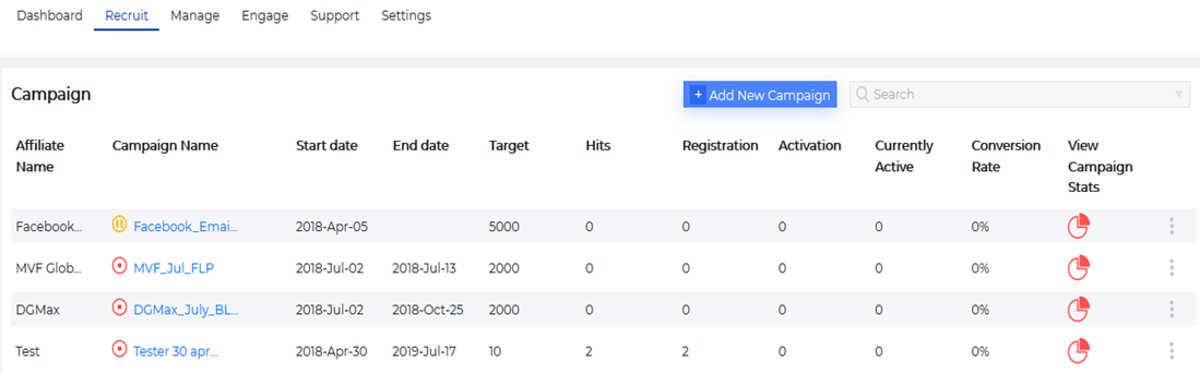 Campaign Management: Add and manage campaigns under the affiliates created. Track the conversions and measure the performance.