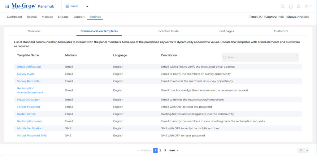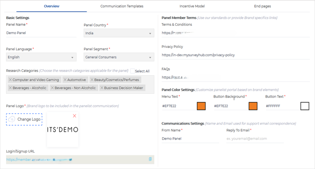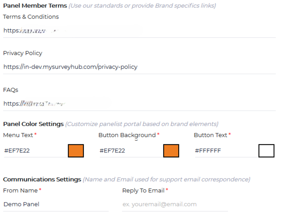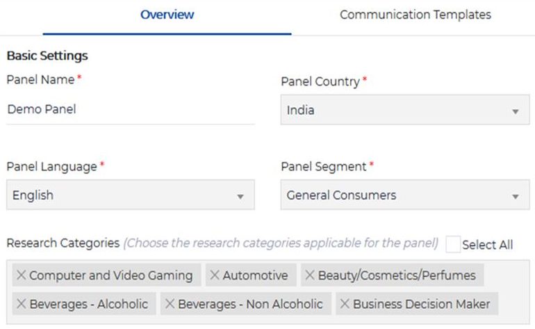 - Panel Language: Choose the panel language. Primary language in which the panelist portal and communication templates will be set.