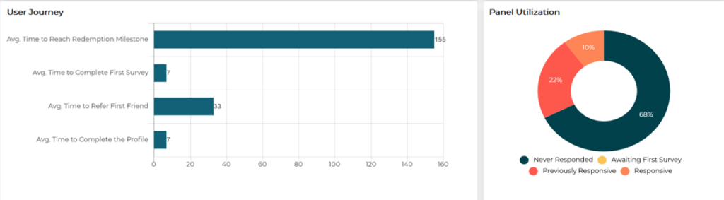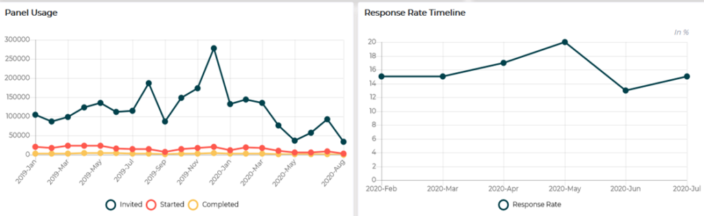 - Panel Usage: Responses and completes received against the total invites. Helps to analyse panel responsiveness.