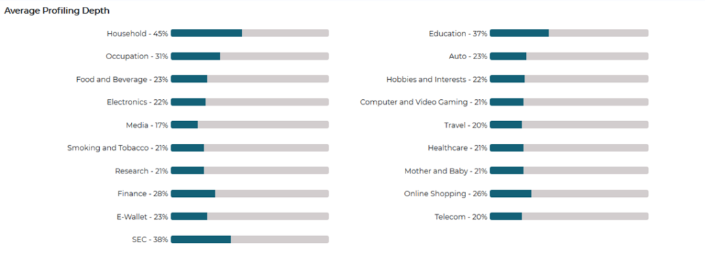 - Profiling Depth: Track the profiling depth per profile category and plan to engagement activities to enrich panelist data pointers.