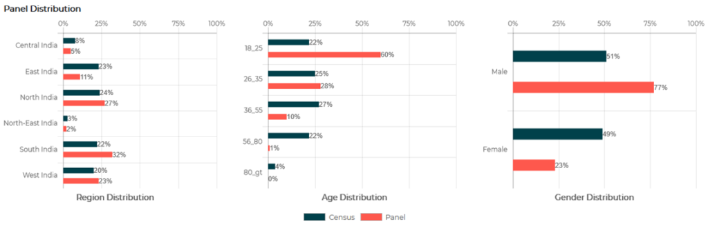 - Panel distribution: Compare panel potential with national census representation.