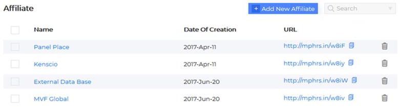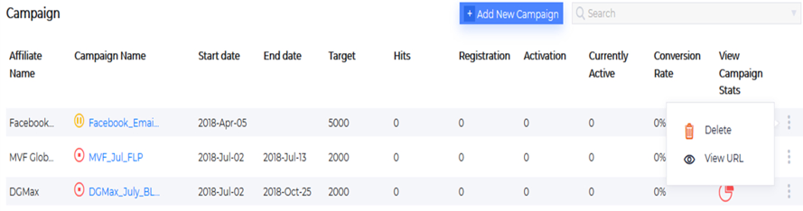 - List Campaigns: List campaigns initiated and monitor the conversions across multiple campaigns created under various affiliates.