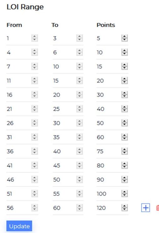 Incentive Model: Define point based incentive model based on length of the study. Members upon successfully completing the study/activity will automatically be assigned with the predefined incentives/points based on this table.